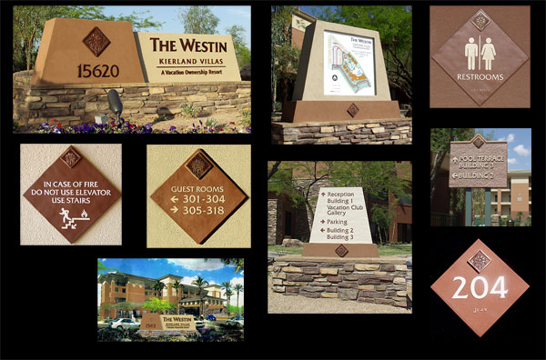 Kierland VillasScottsdale, AZ 2005 ARDA This project won an international award for its’ design. The system was developed to compliment the architecture with the usage of the same colors and stucco material. The guest area signage is ADA compliant, with sandblasted tile using no paint, allowing the enamel surface to contrast with the interior blasted terra-cotta tile showing through.